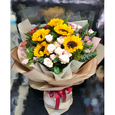 向日葵5枝加配精美襯花